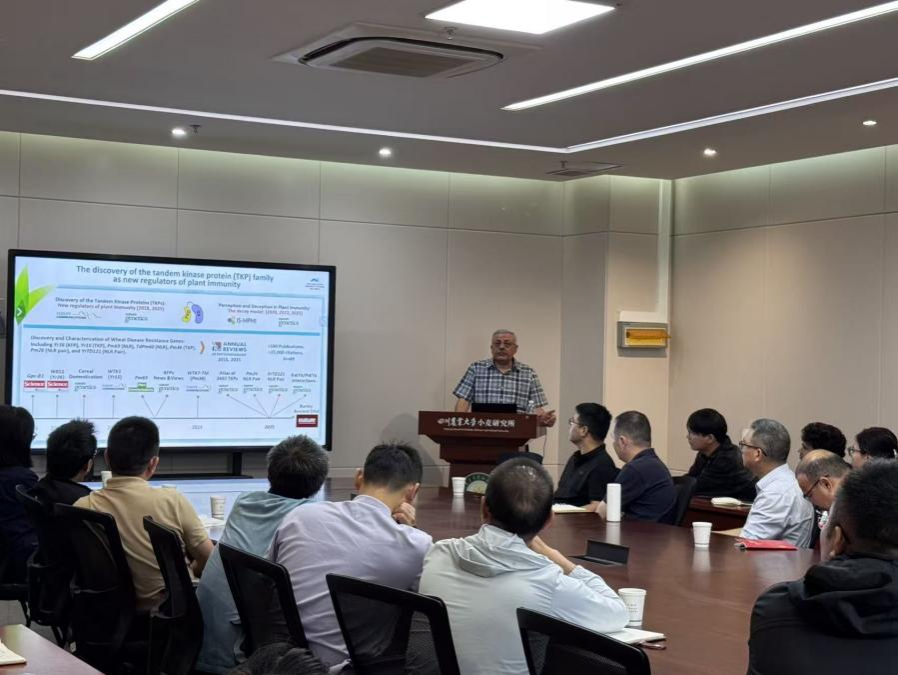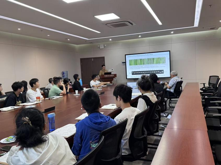 Tzion Fahima教授以《Pathogen Perception and Deception in Plant Immunity by Tandem Kinase Fusion Proteins(植物免疫中串联激酶融合蛋白对病原体的感知与欺骗)》为题作学术报告,系统阐述植物免疫中串联激酶融合蛋白在病原体感知与欺骗机制方面的前沿研究成果,深入解读该领域的分子作用原理与应用前景。与会师生围绕报告中植物基因组与抗性研究的关键技术、实验数据及未来研究方向展开热烈讨论,为双方深入探讨植物基因组与抗性研究领域的前沿问题搭建了良好平台。