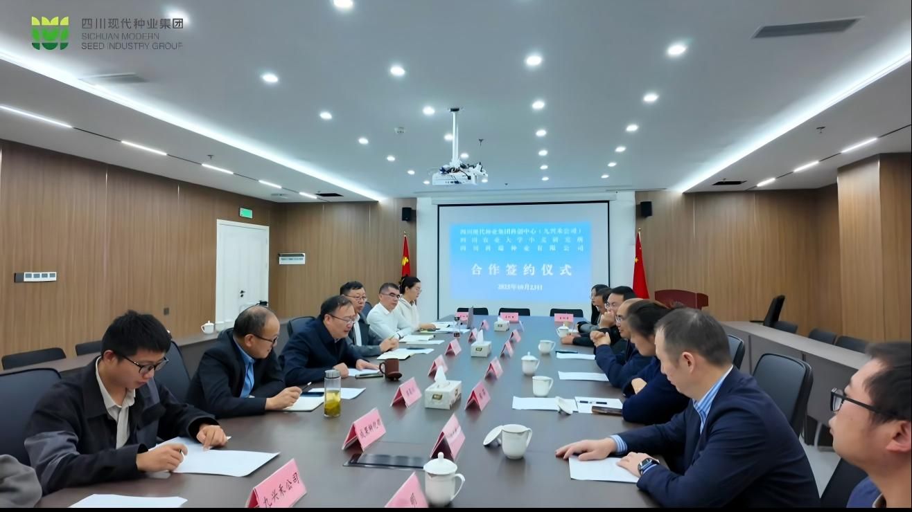 10月23日,小麦新品种 “蜀麦2229” 合作签约仪式在四川现代种业集团科技创新中心有限公司举行。小麦研究所所长魏育明、党委书记侯莉、副所长江千涛及品种主持选育人郝明出席,与四川省现代种业发展集团九兴禾农业有限公司总经理周蜀川,四川科瑞种业有限公司总经理张翅代表完成签约。