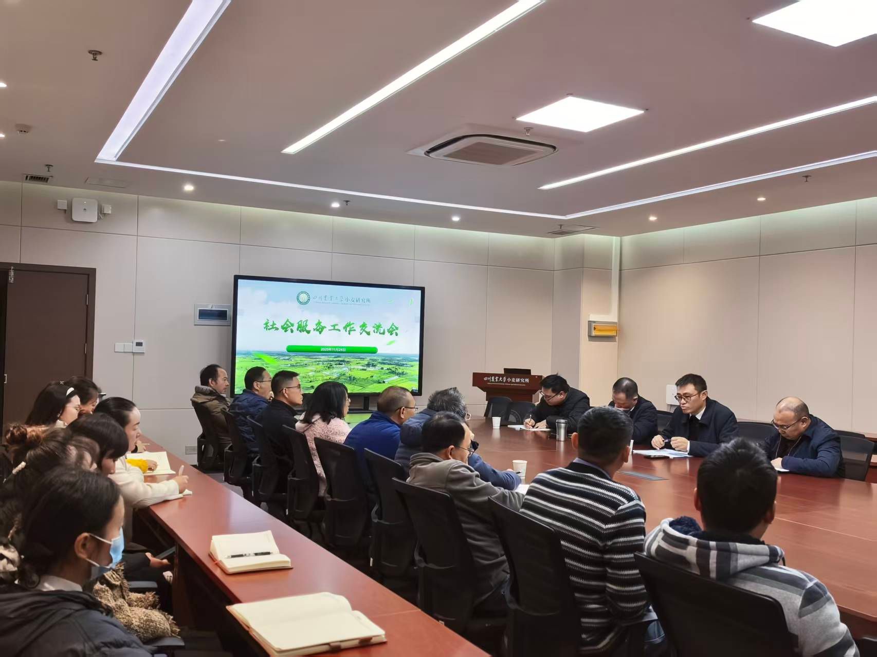 胡剑锋副院长就学校社会服务工作相关政策进行了解读,对近期开展的业绩分核定、专家库征集、校地校企合作、科技成果转化等相关工作要求进行了传达。新农村发展研究院蒋攀老师就相关工作注意事项作补充说明。