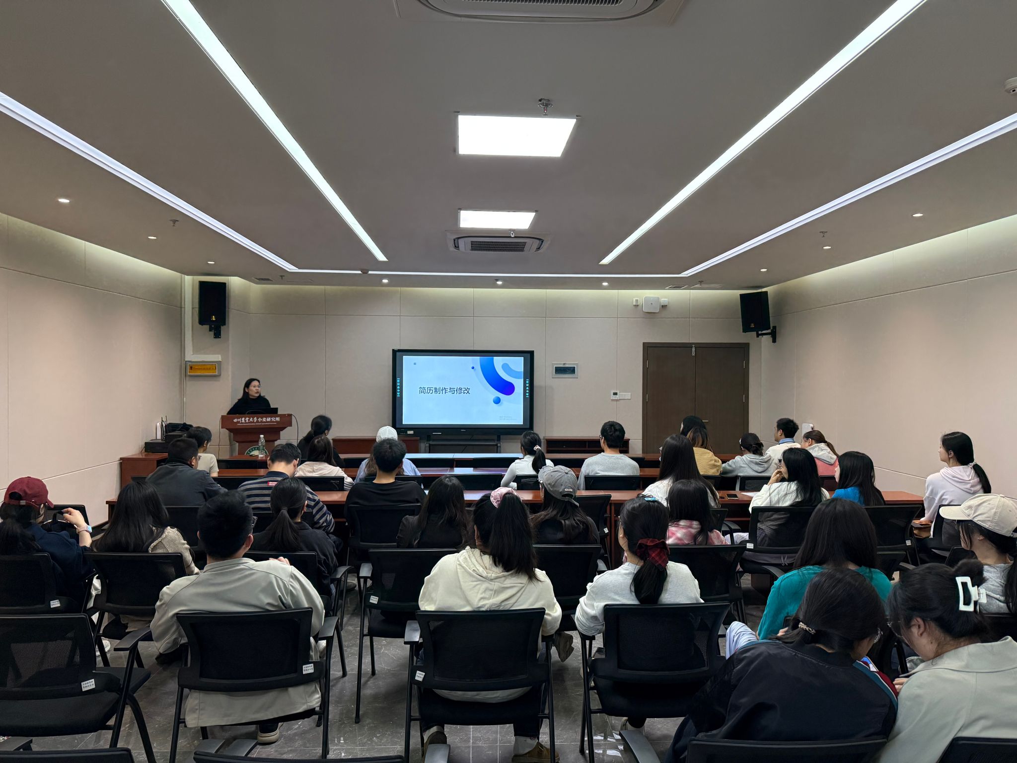 推进会分两个阶段开展。第一阶段,学校招生就业处就业二科科长尹媛媛受邀作专题辅导。尹媛媛结合长期就业指导工作实践,围绕简历结构设计、内容打磨优化、核心亮点提炼、岗位精准匹配等关键内容进行系统讲解,并结合典型案例、STAR法则和USP原则剖析常见问题。她强调,简历是求职的重要“敲门砖”,务必做到重点突出、逻辑清晰、表述精准,充分彰显个人优势与岗位适配度。