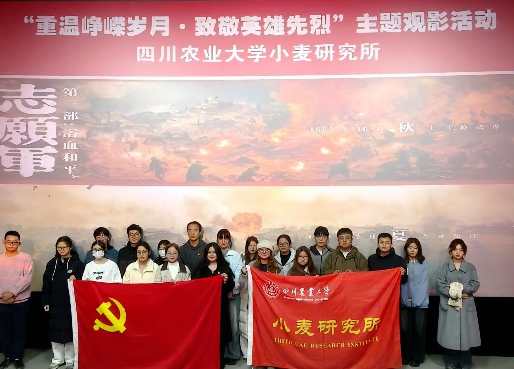 为深切缅怀革命先辈,弘扬伟大抗美援朝精神,进一步激发广大学生党员的爱国热情和奋斗精神,2025年11月10日,四川农业大学小麦研究所党委组织全体学生党员开展了以“重温峥嵘岁月,致敬英雄先烈”为主题的红色观影暨学生党员党日活动,集体观看了爱国主义教育影片《志愿军:浴血和平》。