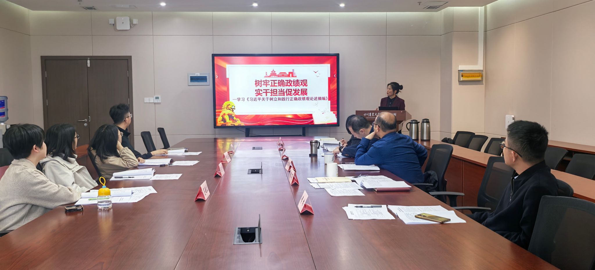 会议紧紧围绕学习贯彻习近平总书记重要讲话精神、树立和践行正确政绩观、全面从严治党三个主题,分阶段开展系统学习研讨。侯莉以《树牢正确政绩观 实干担当促发展》为题讲授微党课。她从“提高政治站位、深刻认识树立和践行正确政绩观的重要性和紧迫性”,“把握核心要义、以“三个叩问”校准政绩观坐标”和“聚焦重点任务、推动学习教育走深走实、见行见效”三个方面带领全体人员深入学习《习近平关于树立和践行正确政绩观论述摘编》。侯莉谈到,树立和践行正确政绩观不是领导干部的“独角戏”,而是每一位支部书记和全体党员的“必修课”,点滴贡献皆是业绩,要把学习成效、工作实绩体现在解决实际问题、推动事业发展、提升师生满意度上,以实干担当践行初心使命。