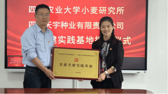 共建活动中,小麦研究所党委书记侯莉与四川天宇种业党支部书记何新共同签订党建共建协议,并为党建共建实践基地揭牌,标志着双方党建共建、科企合作迈入深度协同、务实推进的新阶段。双方将以共建基地为平台,联合开展共上一堂党课、集体政治生日、学习大家谈、组织互访交流等活动,建立常态化党组织互访机制。坚持以党建红引领产业兴,以科技创新守护粮食安全围绕小麦种质创新、品种选育、绿色高效栽培、技术推广、全产业链融合等方面深化协作,构建从种质创制、区域试验到规模化推广的完整创新链条,不断提升小麦产业核心竞争力。